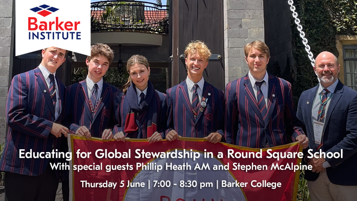 The night will also involve Mr Peter Gibson, Head of Character Education and Mr Phillip Heath AM, Head of Barker College, exploring how Barker continues to meet the needs of our students, and the world, through a global citizenship and global stewardship lens. One aspect will be information about new opportunities available to students with Barker now firmly established as a Round Square school allowing, some of which include student conferences, international exchanges, leadership development, and character development.