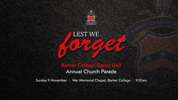 The Barker College Cadet Unit invites you to its Annual Church Parade. This annual tradition offers a moving memorial service to reflect and remember those who served and sacrificed in the First World War.